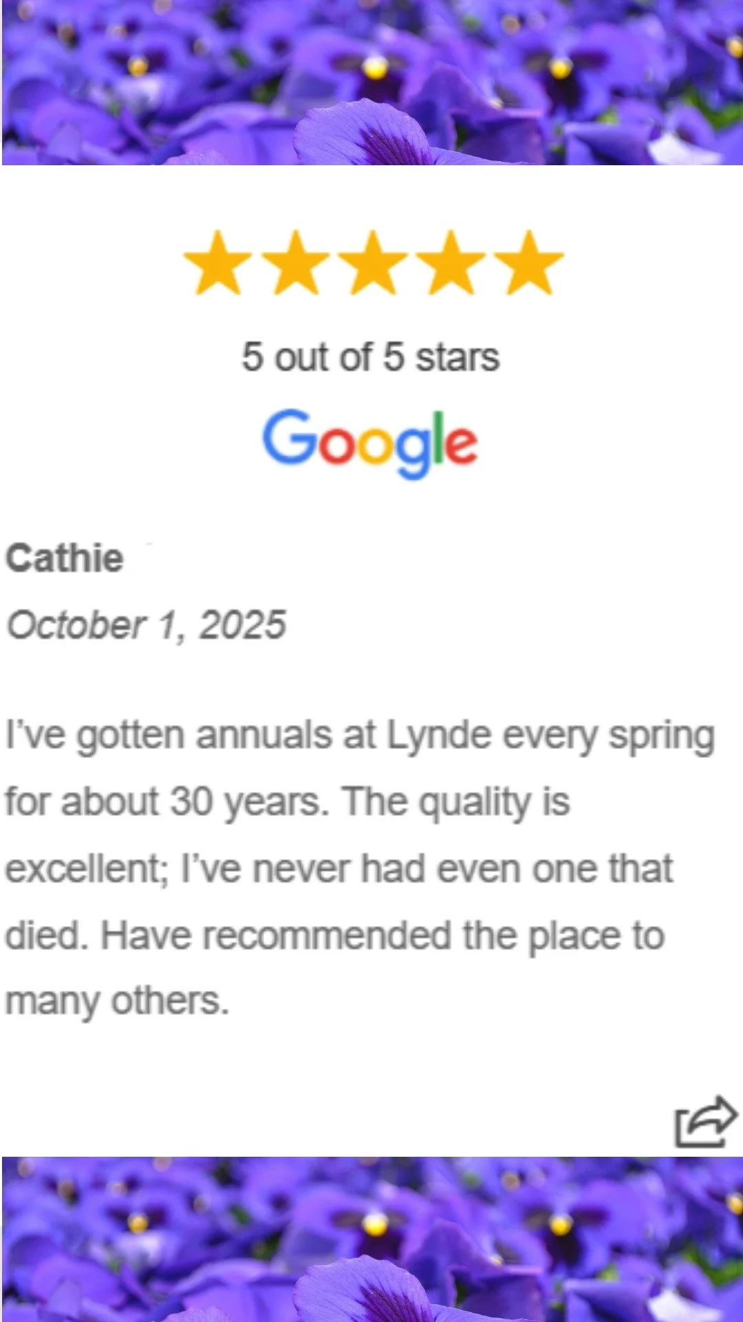 Garden Center Hours: Mon-Sat 9am-5pm, Sunday 10am-5pm